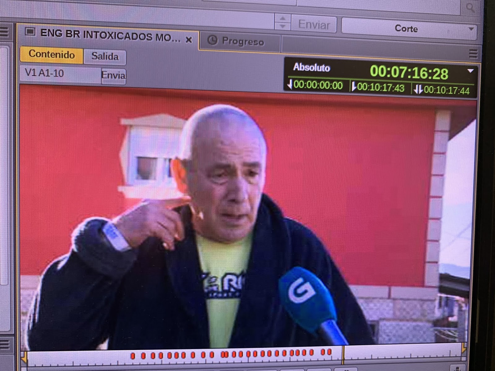 Este é “ Mosote” de Meira en Moaña. A madrugada do sábado resultou intoxicado por monóxido de carbono. El e catro familiares máis. Logo de pasar toda a noite en urxencias do Cunqueiro( aínda leva a cinta no pulso) tivo a paciencia de nos aturar. Explicounos cómo foi todo e que nesa casa se reúnen ás veces dezaseisbe que onte tiñan as vodas de ouro da súa irmá. “ Mosote ten un nome no carnet: Manuel Ríos Riobó e é o simpático da semana; el e o bombeiro que nos atendeu: Rubén Sío.